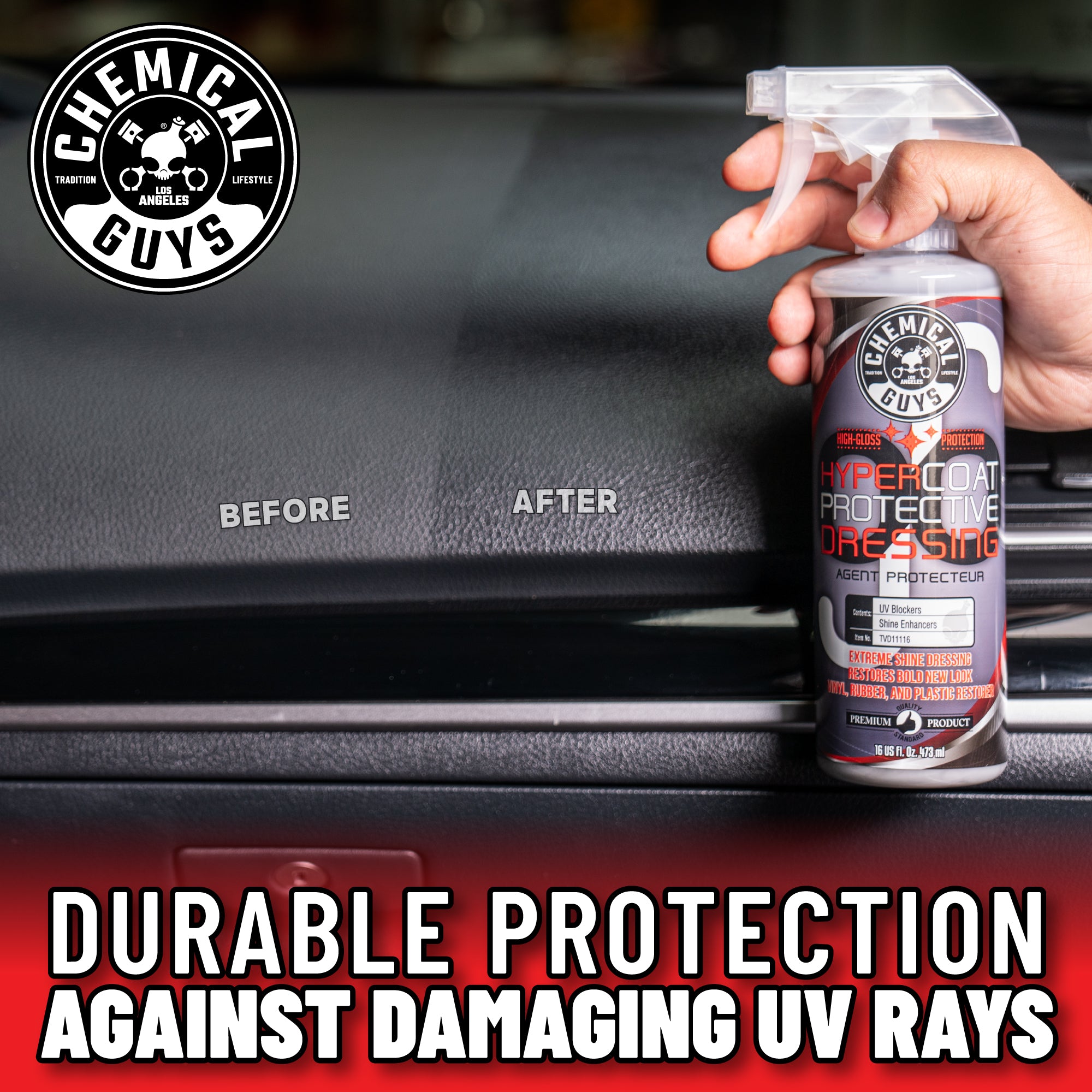 G6 HyperCoat uses proprietary technology to restore and protect dried-out vinyl. rubber. and plastic car parts with a brand-new look. a bold and brilliant wet shine. and durable protection against damaging UVA and UVB rays.