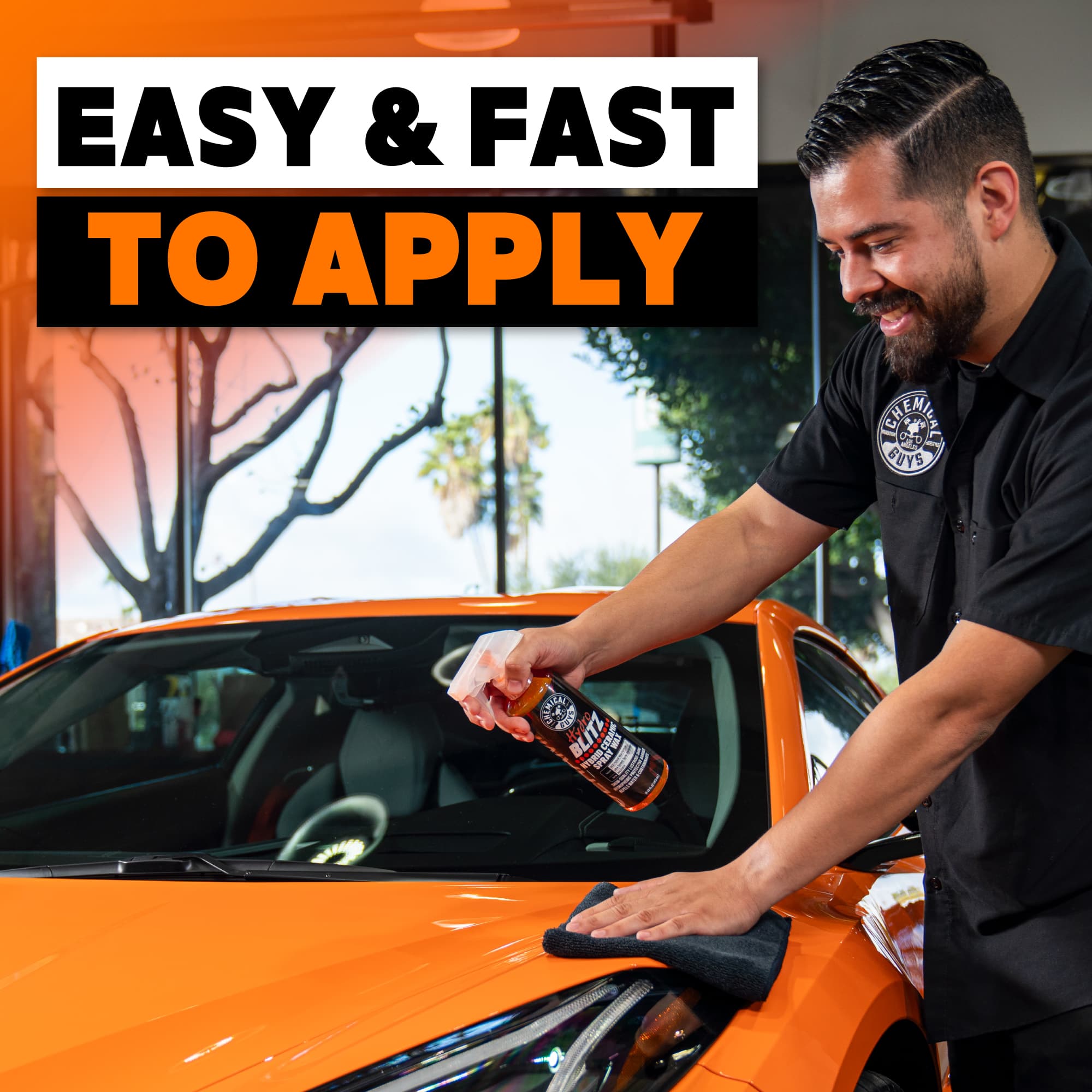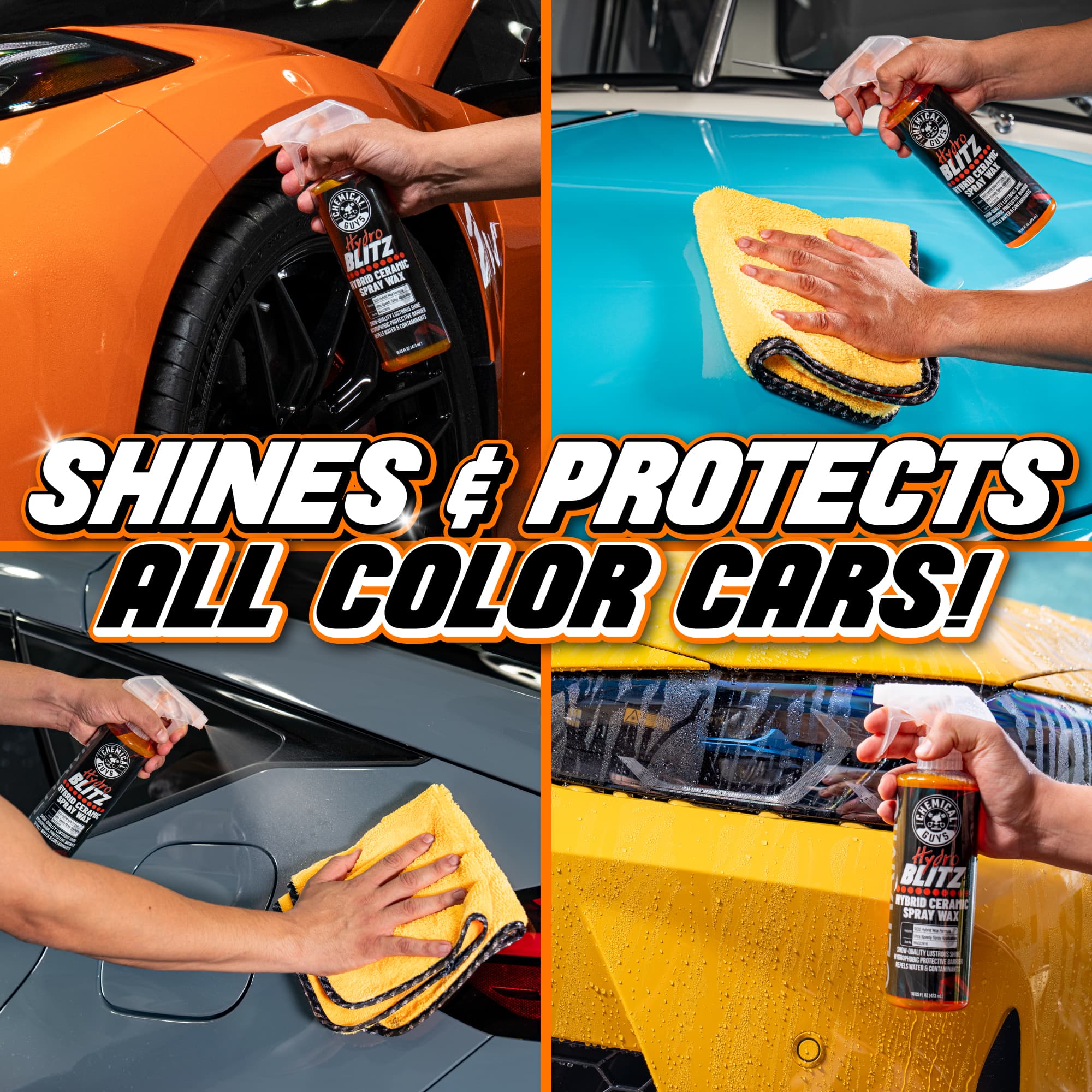 HydroBlitz is a hybrid ceramic spray wax that offers the quick application and shine of traditional wax. combined with the enhanced protection and impressive water beading of ceramic coatings.?It’s designed?for those who want a fast and effective way to get a glossy finish while ensuring long-lasting durability for their vehicle’s surfaces.