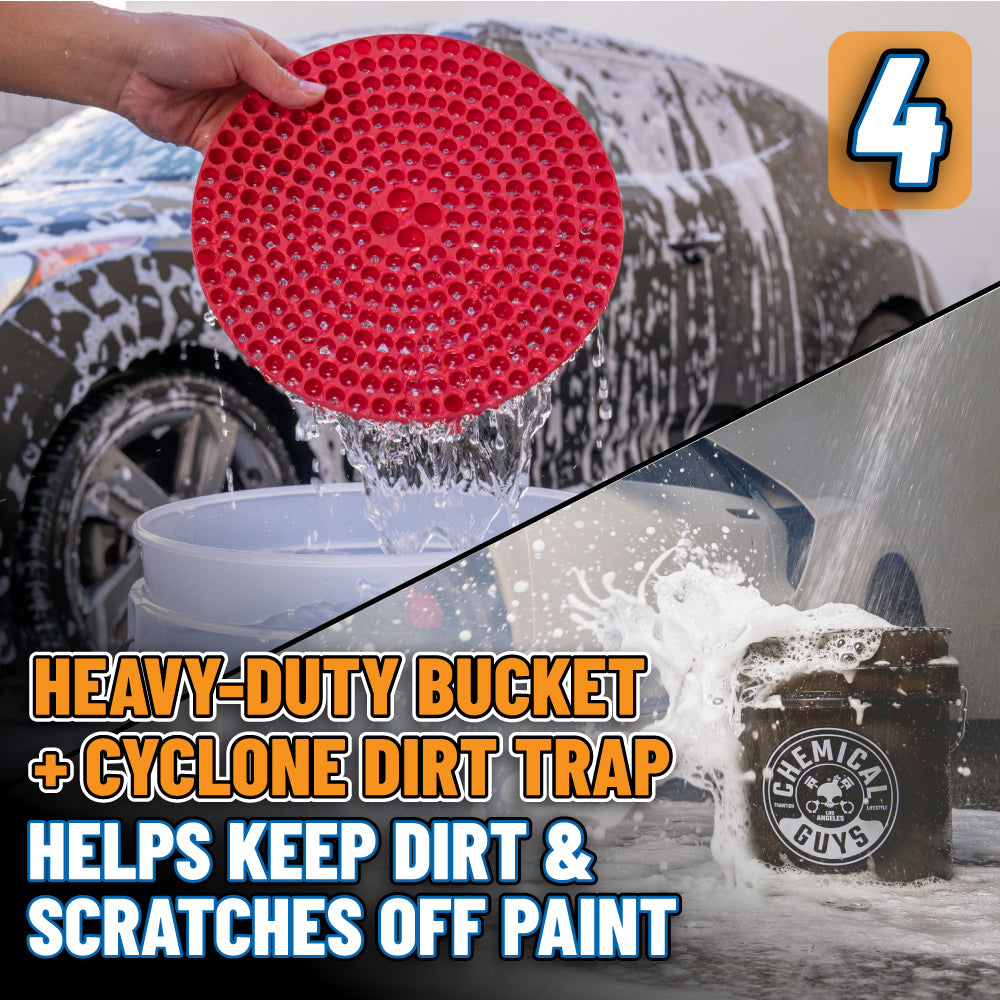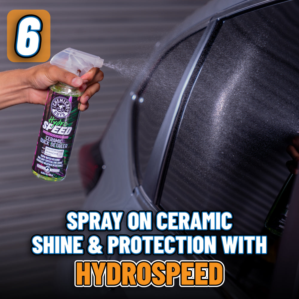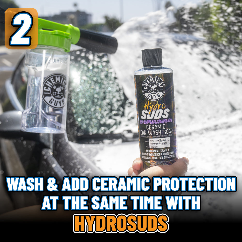 The Megalodon Pro Finish Kit gives you a pro-level shine right in your driveway. Clean and protect the interior. lock down grime with the dirt trap. and coat your car in suds with the Foam Blaster 6 Pro. HydroSuds soap adds ceramic protection to the mix. and the massive Megalodon drying towel absorbs over a gallon of water. Finish with HydroSpeed Ceramic Quick Detailer for a showroom shine that lasts.