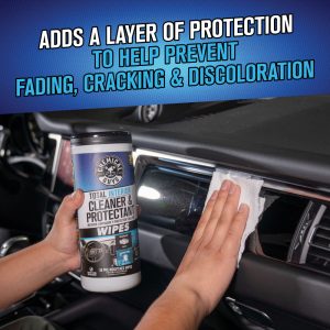 These extra large. ready-to-use. pre-moistened wipes make it easy to clean and protect virtually any interior surface. These ultra-versatile wipes clean seats. dashboards. screens. glass. and more while adding a layer of protection against cracking. fading. and discoloration.?